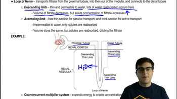 Recognize that the loop of Henle has two limbs: the descending limb and the ascending limb. The descending limb is permeable to water but not to salt, while the ascending limb is permeable to salt but not to water.