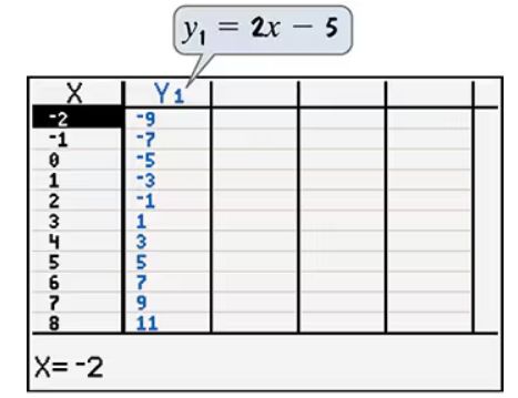 Use the table to solve each inequality. - 3 < 2x - 5 ≤ 3
