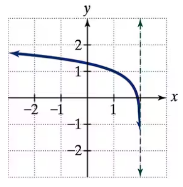 In Exercises 32–35, the graph of a logarithmic function is given. Select the function for each graph from the following options: f(x) = log x, g(x) = log(-x), h(x) = log(2-x), r(x)= 1+log(2-x)