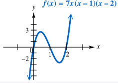 Use the graph to solve each equation or inequality. Use interval notation where appropriate. 7x(x - 1)(x - 2) > 0