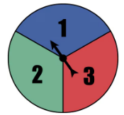32. Rolling a six-sided die, tossing two coins, and spinning the fair spinner shown