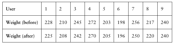 A physical fitness instructor claims that a weight loss supplement will help users lose weight after two weeks. The table shows the weights (in pounds) of 9 adults before using the supplement and two weeks after using the supplement. At α=0.10, is there enough evidence to support the physical fitness instructor’s claim?